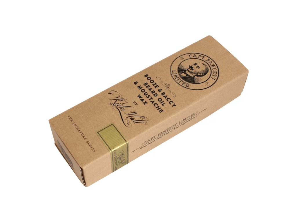 Cpt. Fawcett — Booze & Baccy Beard Oil & Moustache Wax Gift Set je exkluzívna darčeková sada, ktorá vznikla v spolupráci legendárneho kapitána Fawcetta a známeho dandyho Ricki Halla.