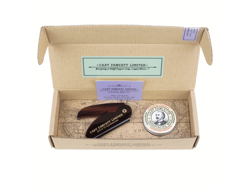 🧭 Cpt. Fawcett — Expedition Strength Moustache Wax & Comb Gift Set