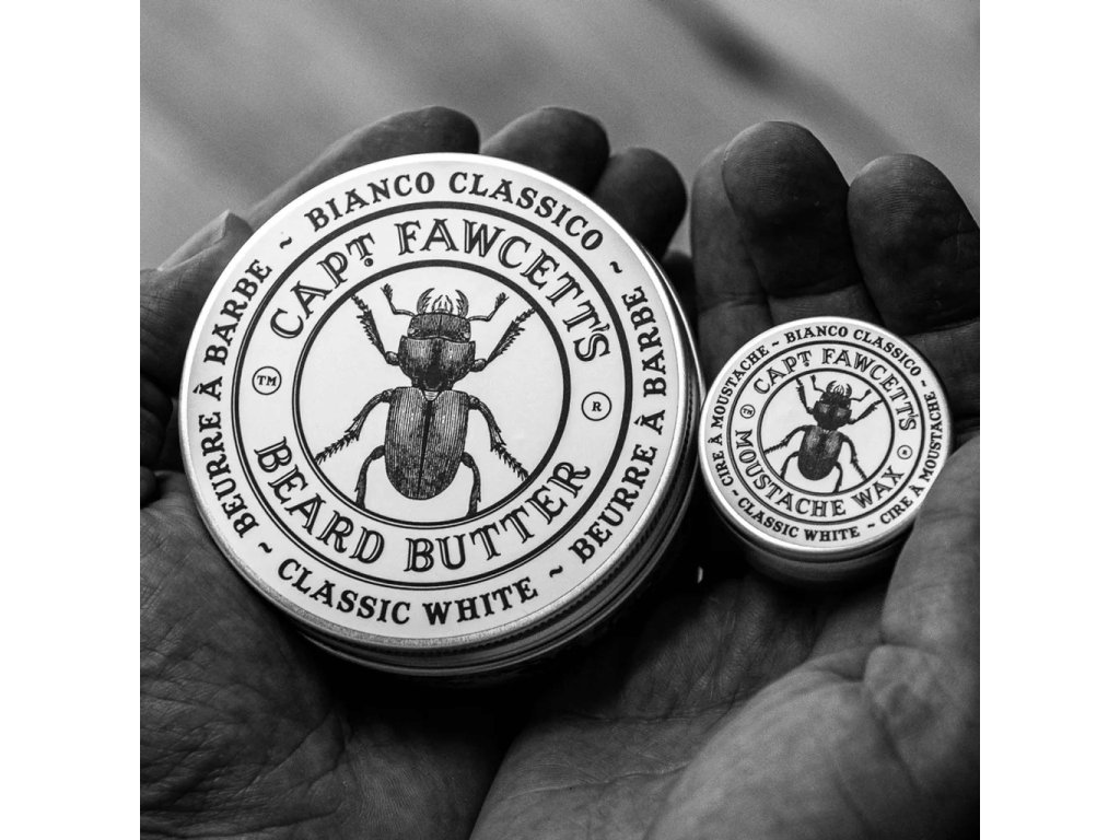 Dopraj svojim fúzom špičkovú starostlivosť s luxusným maslom na fúzy Bianco Classico od legendárneho kapitána Fawcetta.