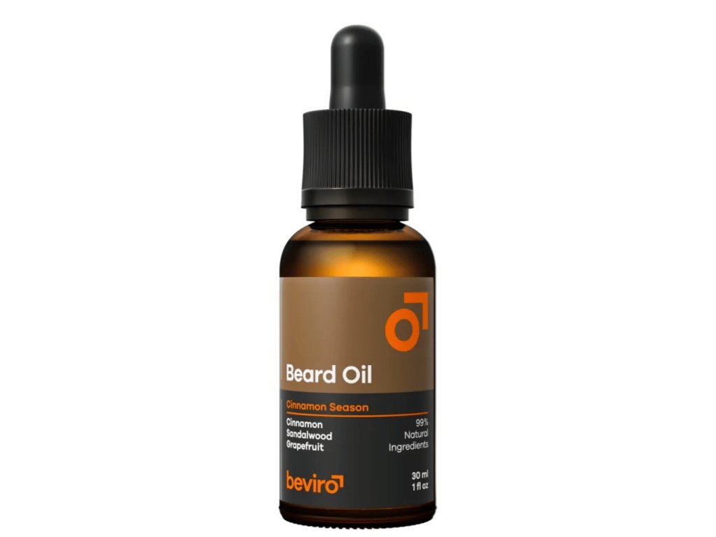 Prírodný olej na bradu Beviro Cinnamon Season (30 ml) s vôňou grepu, škorice a santalového dreva dodá tvojim fúzom výživu, lesk a hebkosť.